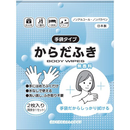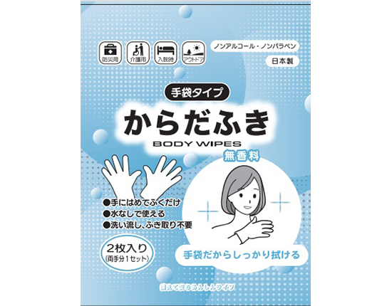 手にはめてマッサージするように拭くだけ!水なしで使えて洗い流し不要